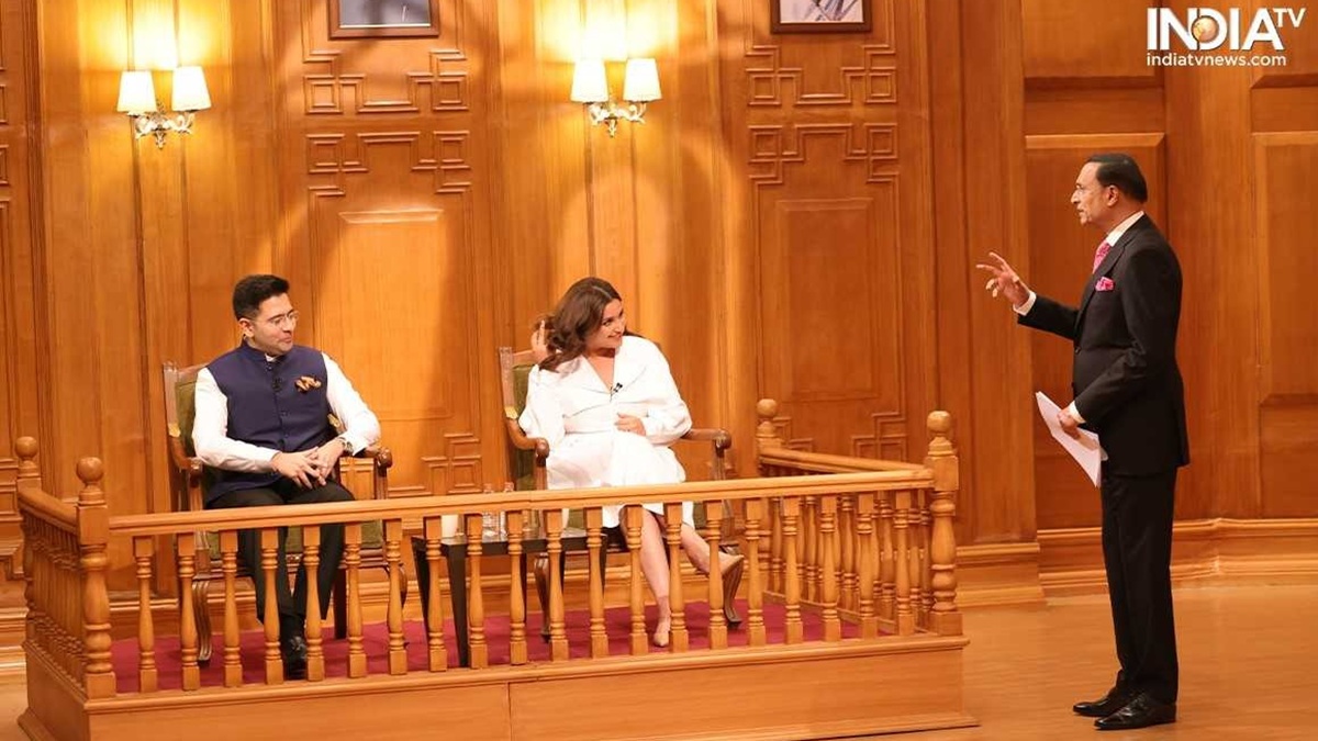 Image Source : INDIA TV आप की अदालत में राघव चड्ढा और परिणीति चोपड़ा नई दिल्ली: इंडिया टीवी के लोकप्रिय शो ‘आप की अदालत’ में इस बार के मेहमान आम आदमी पार्टी के सांसद राघव चड्ढा और बॉलीवुड एक्ट्रेस परिणीति चोपड़ा थे। इस कपल ने इंडिया टीवी के चेयरमैन एवं